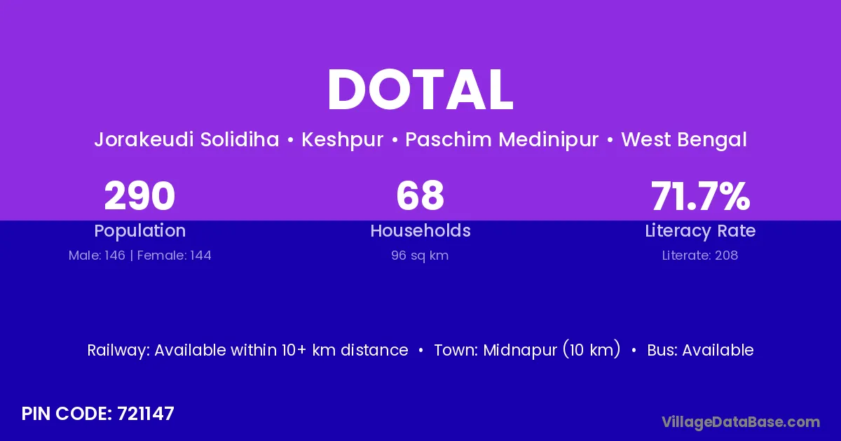 According to Census 2011 information, the village code of Dotal village is 732139.