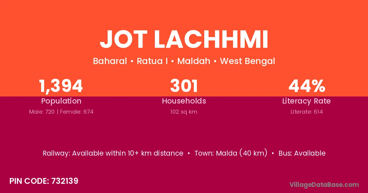 Malda (40 km) is the nearest town to Jot Lachhmi village for major economic activities and is located approximately 40 km away.