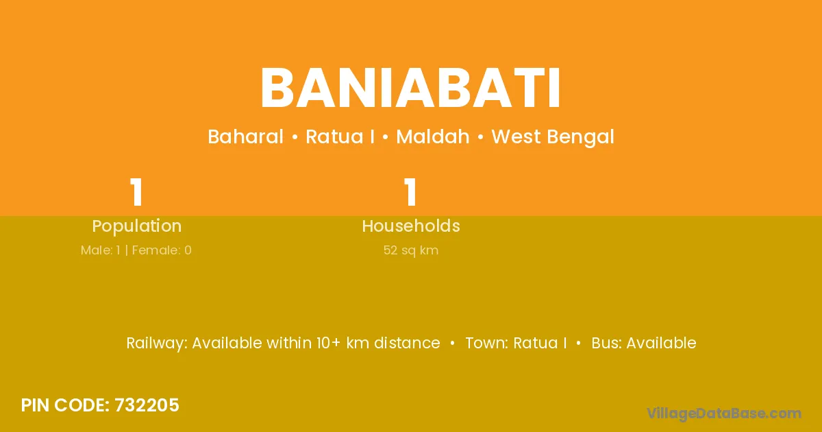 Baniabati village has a total population of 1 people, of which 1 are males and 0 are females.