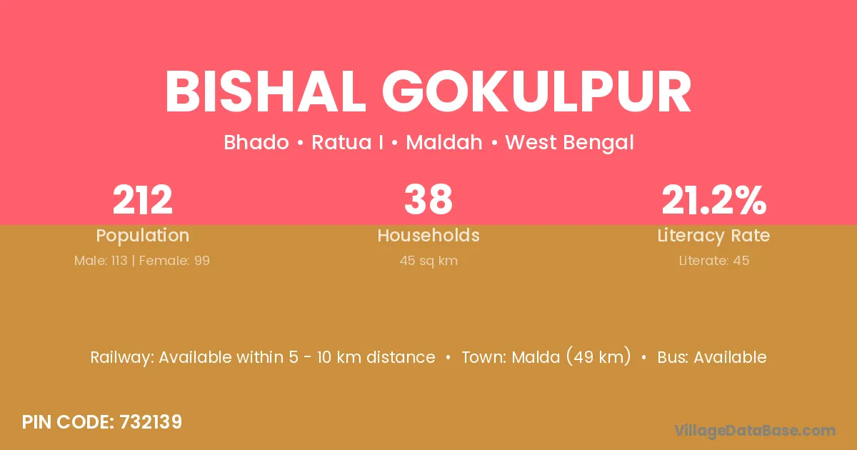 Bishal Gokulpur village is located in the Ratua I Subdivision of the Maldah district in West Bengal.