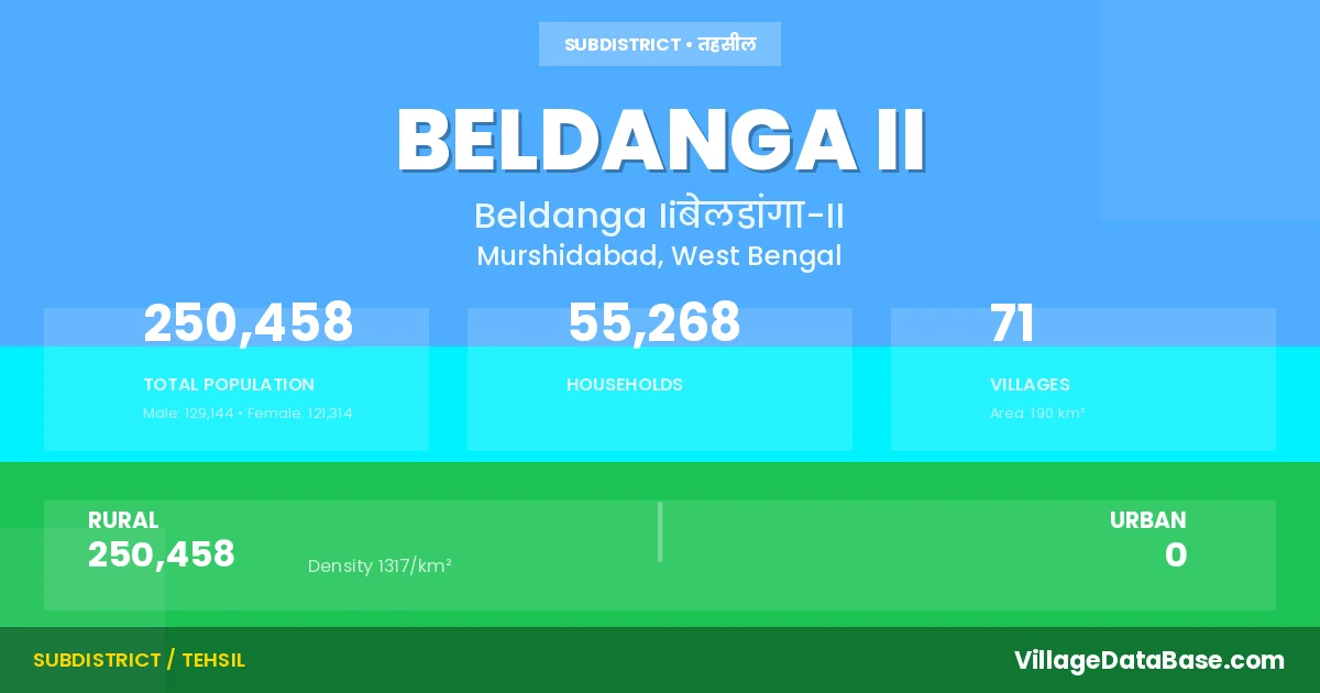 Beldanga II Subdivision comprises about 71 villages. Below is a list of these villages along with information about their respective gram panchayats and the nearest town: