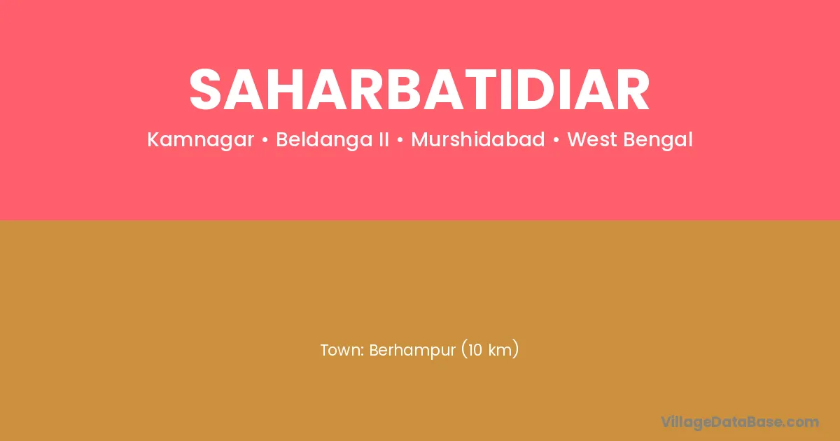 Berhampur (10 km) is the nearest town to Saharbatidiar village for major economic activities and is located approximately 10 km away.