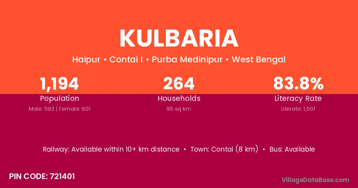 Kulbaria village is located in the Berhampore Subdivision of the Murshidabad district in West Bengal.