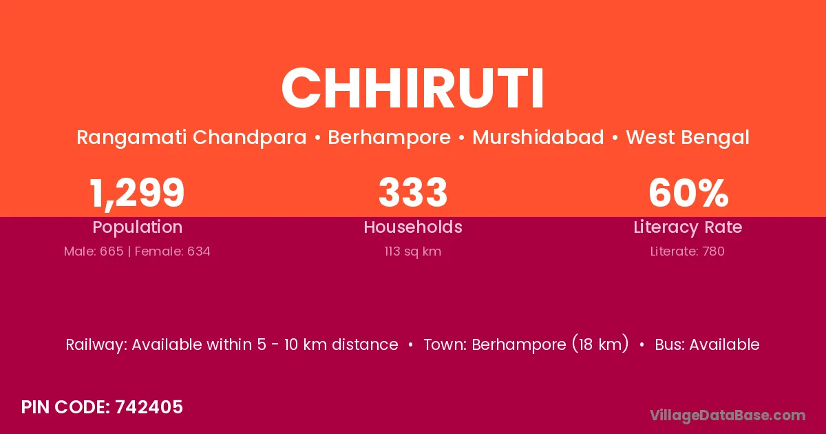Berhampore (18 km) is the nearest town to Chhiruti village for major economic activities and is located approximately 18 km away.