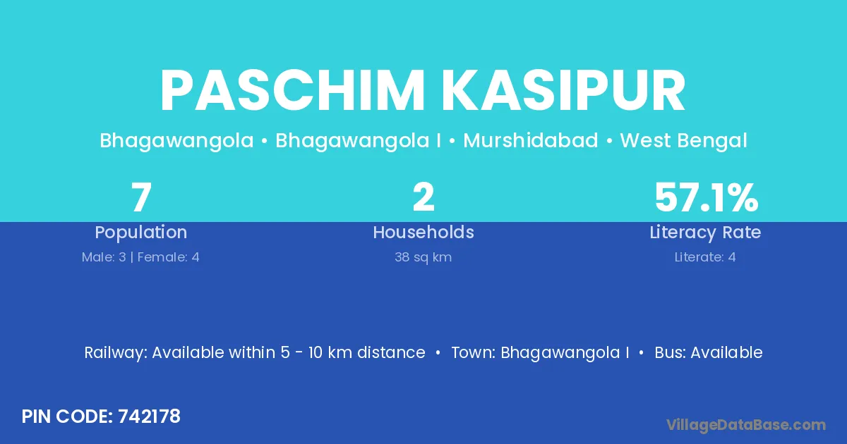 Paschim Kasipur village is located in the Bhagawangola I Subdivision of the Murshidabad district in West Bengal.