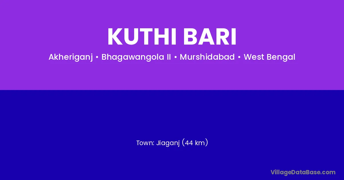 Jiaganj (44 km) is the nearest town to Kuthi Bari village for major economic activities and is located approximately 44 km away.