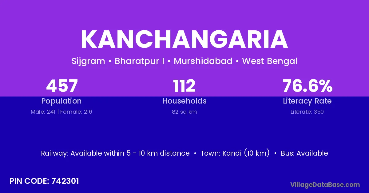 Kandi (10 km) is the nearest town to Kanchangaria village for major economic activities and is located approximately 10 km away.