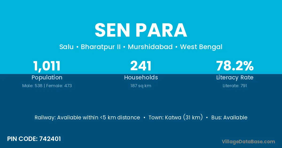 Katwa (31 km) is the nearest town to Sen Para village for major economic activities and is located approximately 31 km away.