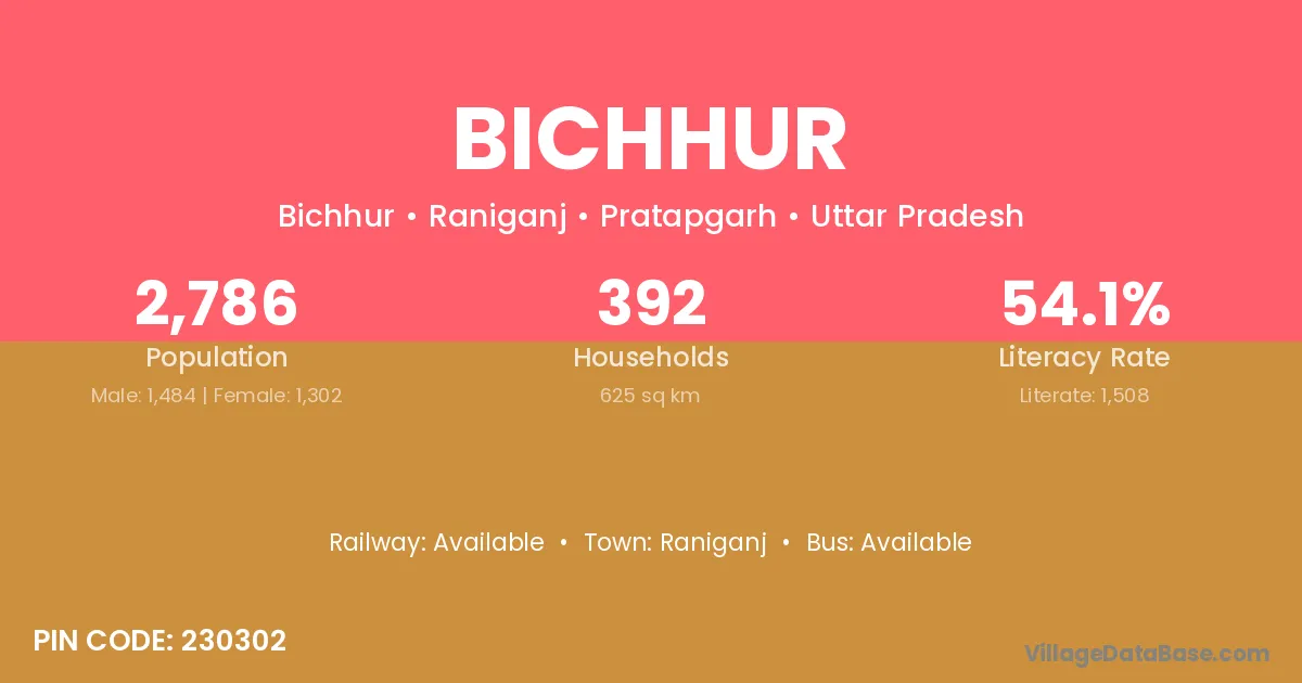 The literacy rate of Bichhur village is 68.21%. Male literacy stands at 72.06% and female literacy at 64.14%.