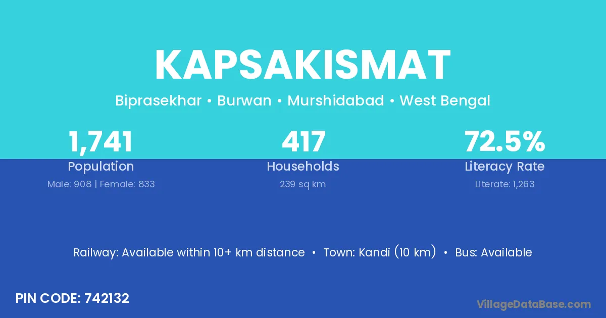 Kapsakismat village is located in the Burwan Subdivision of the Murshidabad district in West Bengal .