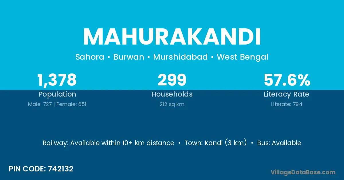 Kandi (3 km) is the nearest town to Mahurakandi village for major economic activities and is located approximately 3 km away.
