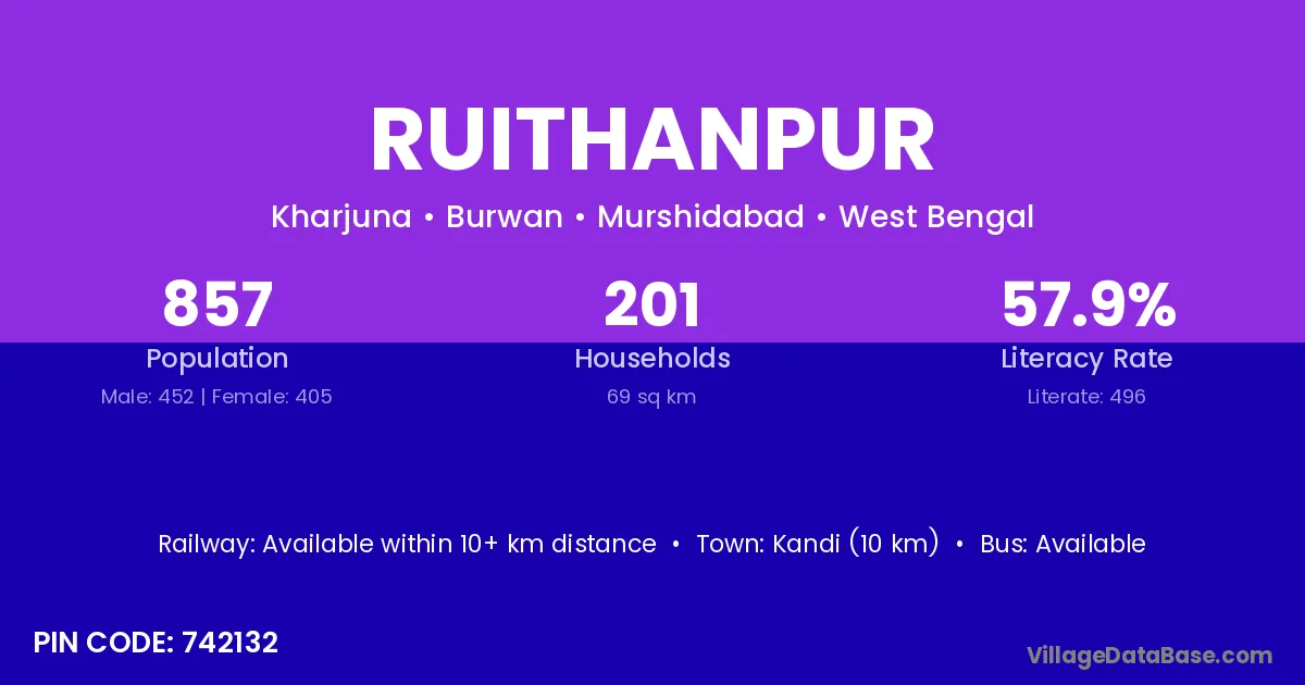 Kandi (10 km) is the nearest town to Ruithanpur village for major economic activities and is located approximately 10 km away.
