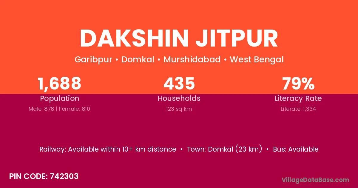 Dakshin Jitpur village has a total population of 1,688 people, of which 878 are males and 810 are females.