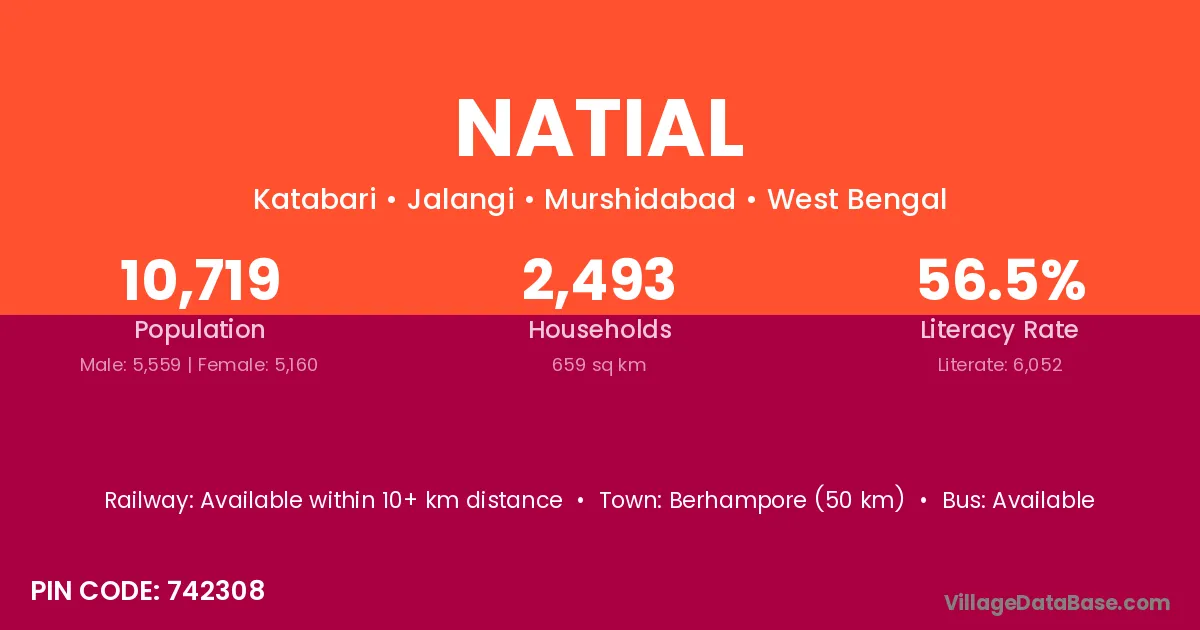 Natial village is located in the Jalangi Subdivision of the Murshidabad district in West Bengal.