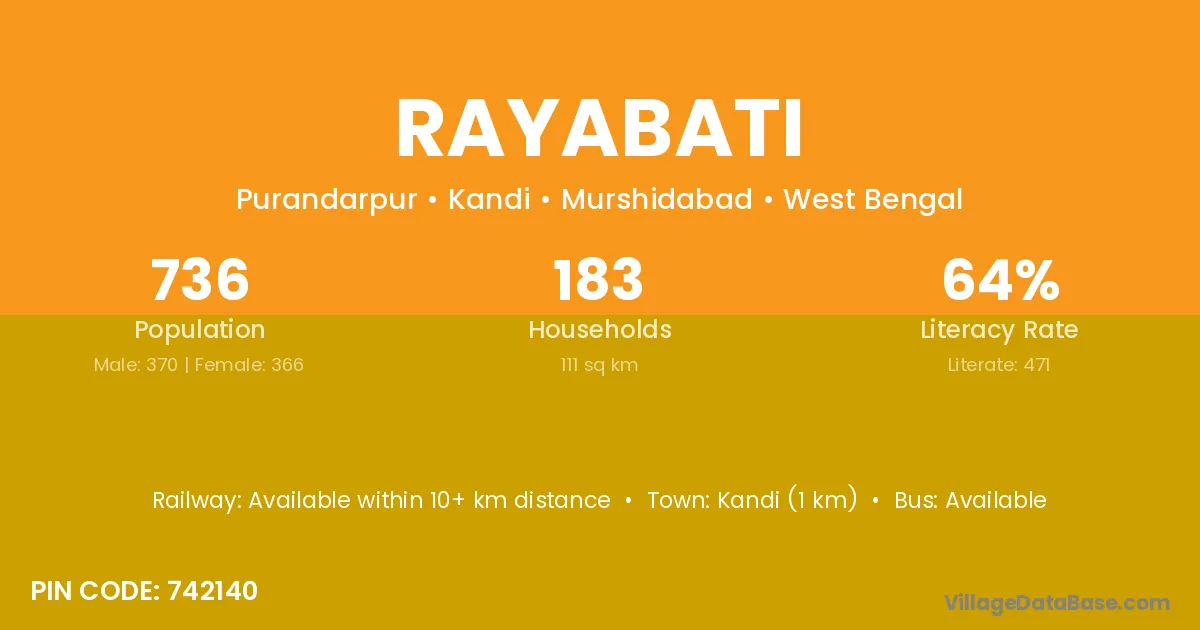 Kandi (1 km) is the nearest town to Rayabati village for major economic activities and is located approximately 1 km away.