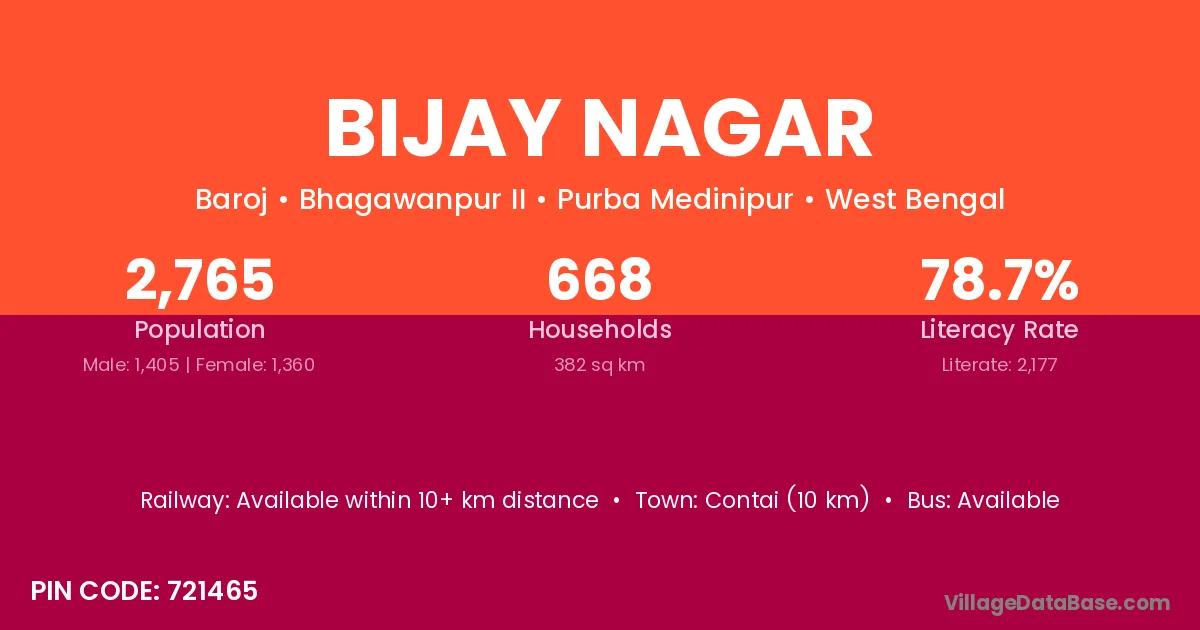 Kandi (10 km) is the nearest town to Bijay Nagar village for major economic activities and is located approximately 10 km away.