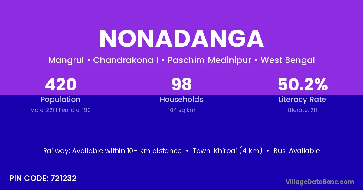Rampurhat (22 km) is the nearest town to Nonadanga village for major economic activities and is located approximately 22 km away.
