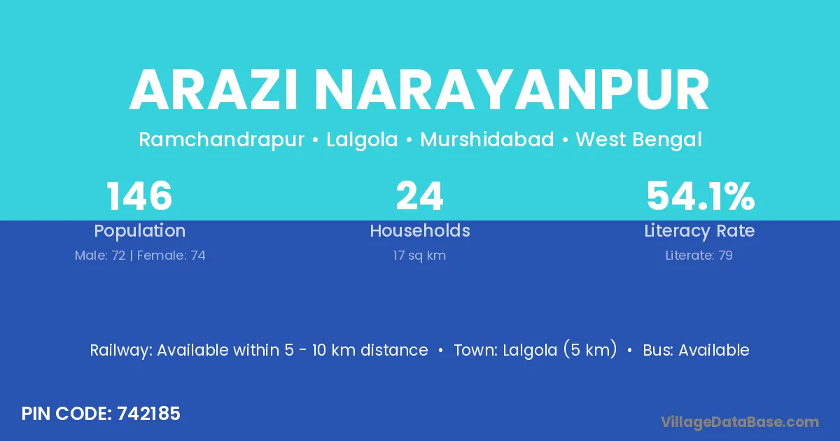 Lalgola (5 km) is the nearest town to Arazi Narayanpur village for major economic activities and is located approximately 5 km away.