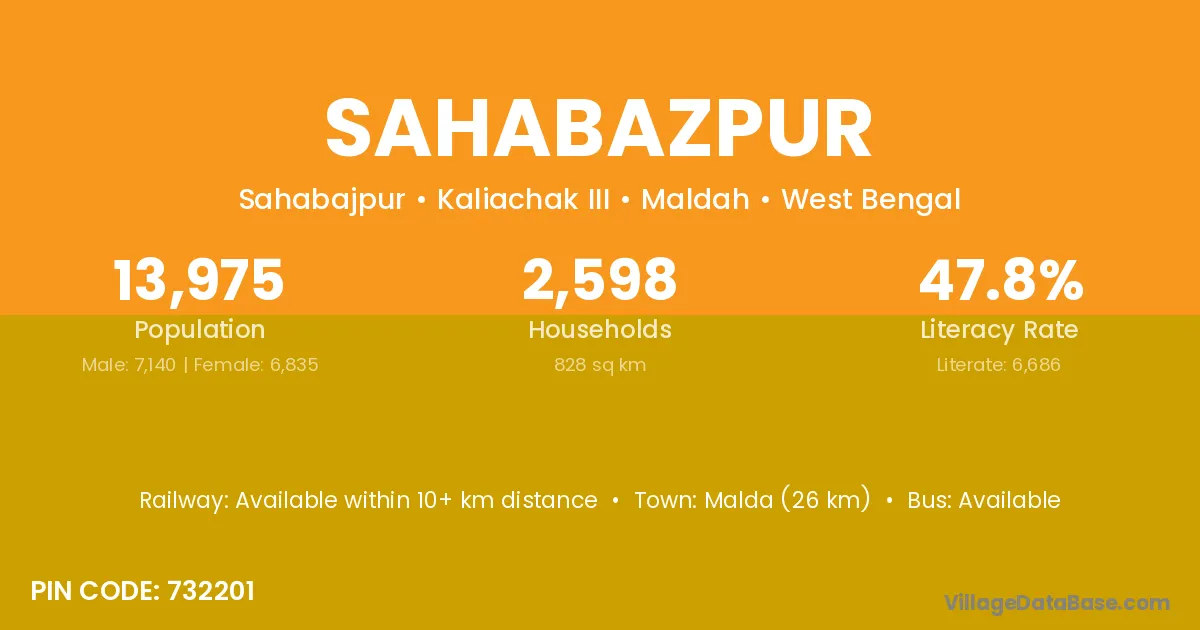 Lalgola (5 km) is the nearest town to Sahabazpur village for major economic activities and is located approximately 5 km away.