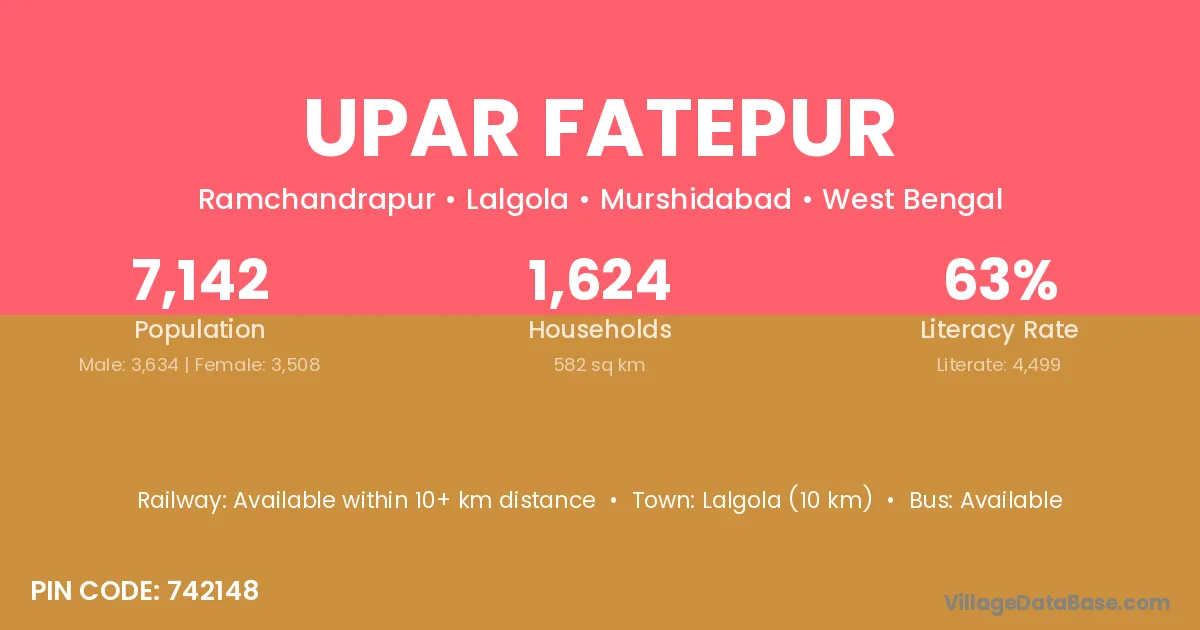 Lalgola (10 km) is the nearest town to Upar Fatepur village for major economic activities and is located approximately 10 km away.