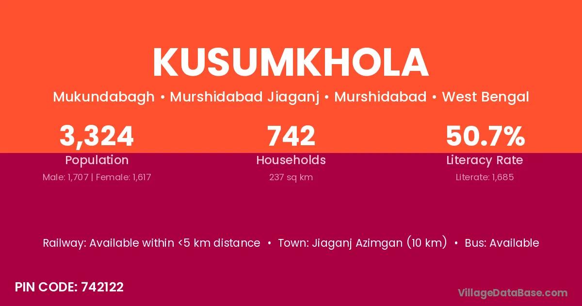 Jiaganj Azimgan (10 km) is the nearest town to Kusumkhola village for major economic activities and is located approximately 10 km away.