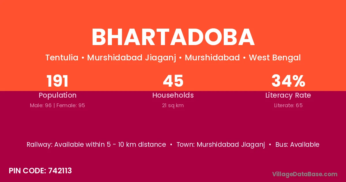 Murshidabad Jiaganj is the nearest town to Bhartadoba village for major economic activities