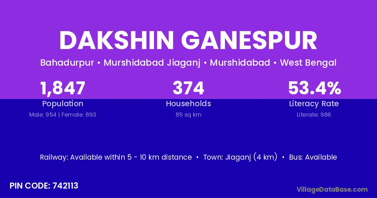 Jiaganj (4 km) is the nearest town to Dakshin Ganespur village for major economic activities and is located approximately 4 km away.