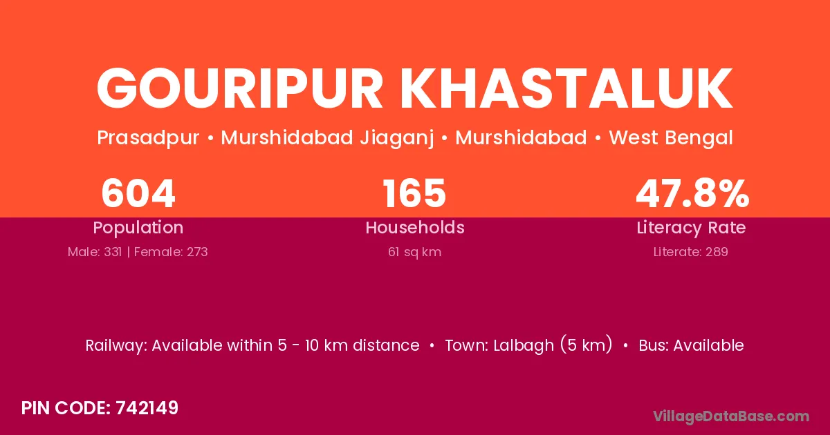 Gouripur Khastaluk village is located in the Murshidabad Jiaganj Subdivision of the Murshidabad district in West Bengal .