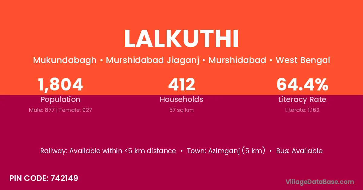 Azimganj (5 km) is the nearest town to Lalkuthi village for major economic activities and is located approximately 5 km away.