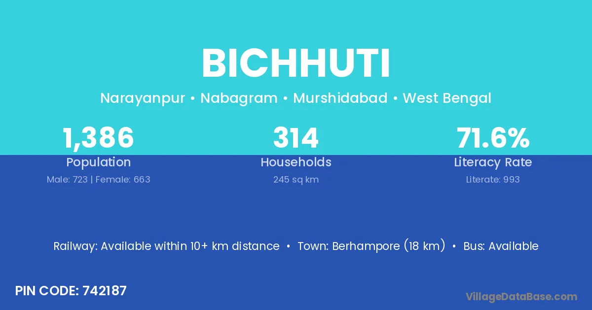 Bichhuti village is located in the Nabagram Subdivision of the Murshidabad district in West Bengal.
