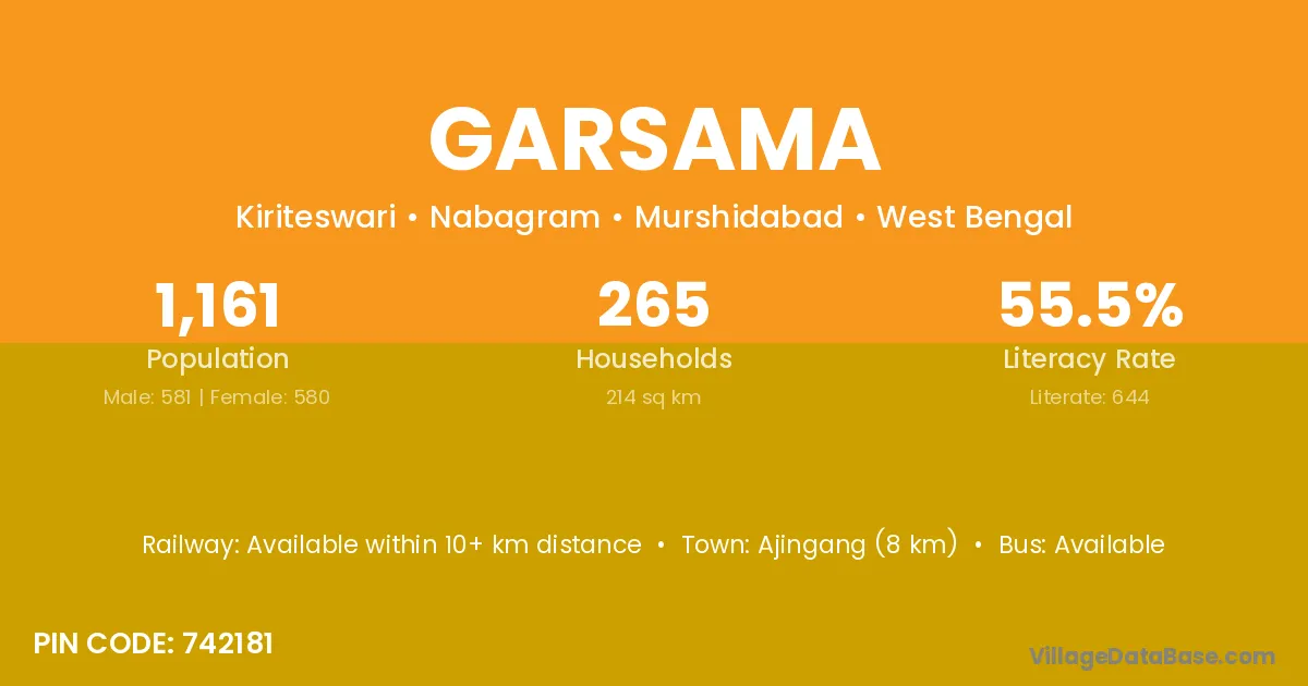 According to Census 2011 information, the village code of Garsama village is 742181.