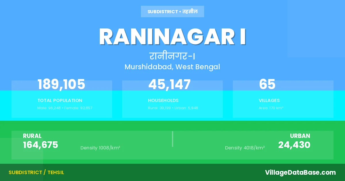 Raninagar I Subdivision comprises about 65 villages. Below is a list of these villages along with information about their respective gram panchayats and the nearest town: