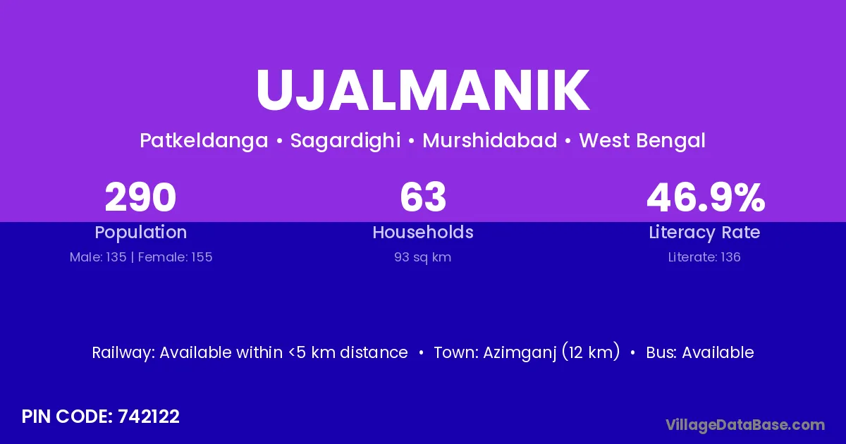 Azimganj (12 km) is the nearest town to Ujalmanik village for major economic activities and is located approximately 12 km away.