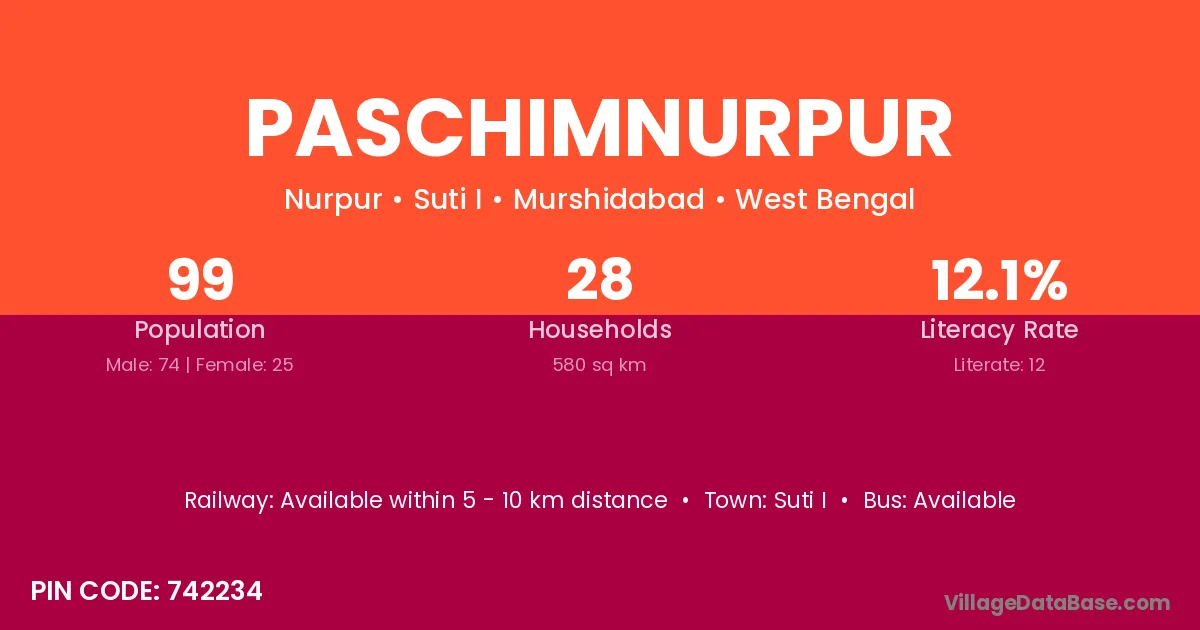 Paschimnurpur village is located in the Suti I Subdivision of the Murshidabad district in West Bengal.