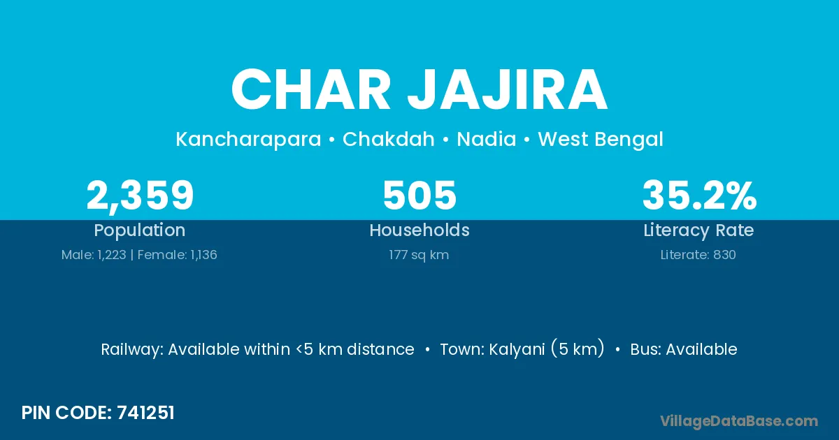 Kalyani (5 km) is the nearest town to Char Jajira village for major economic activities and is located approximately 5 km away.