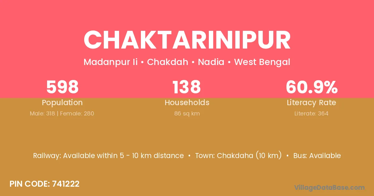 Chakdaha (10 km) is the nearest town to Chaktarinipur village for major economic activities and is located approximately 10 km away.