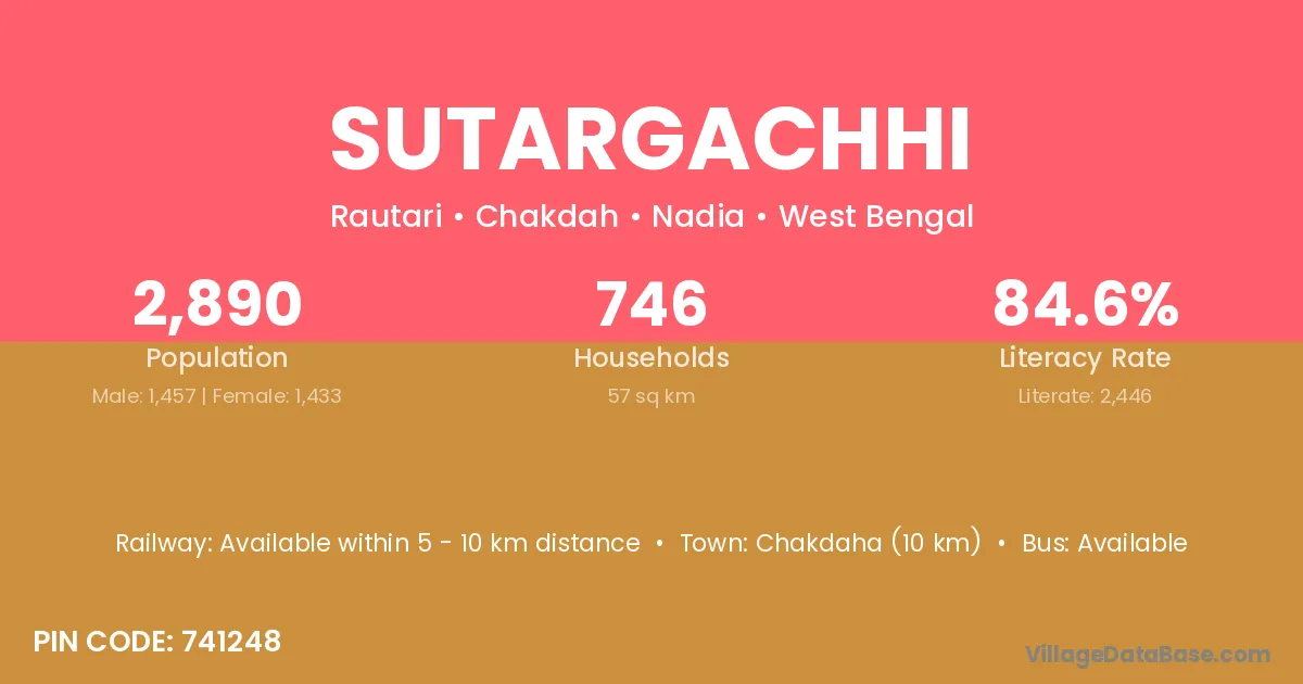 Chakdaha (10 km) is the nearest town to Sutargachhi village for major economic activities and is located approximately 10 km away.