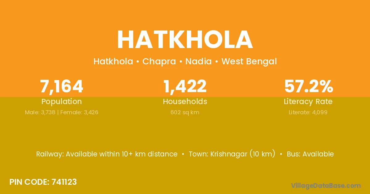 Krishnagar (10 km) is the nearest town to Hatkhola village for major economic activities and is located approximately 10 km away.