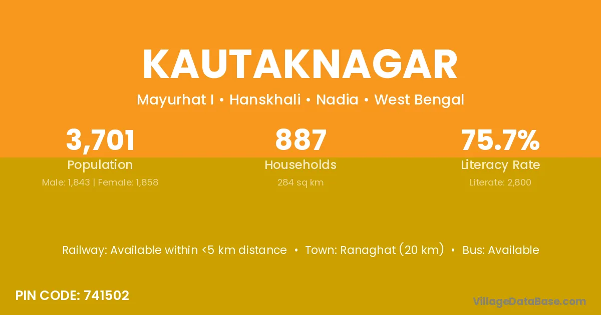 Ranaghat (20 km) is the nearest town to Kautaknagar village for major economic activities and is located approximately 20 km away.