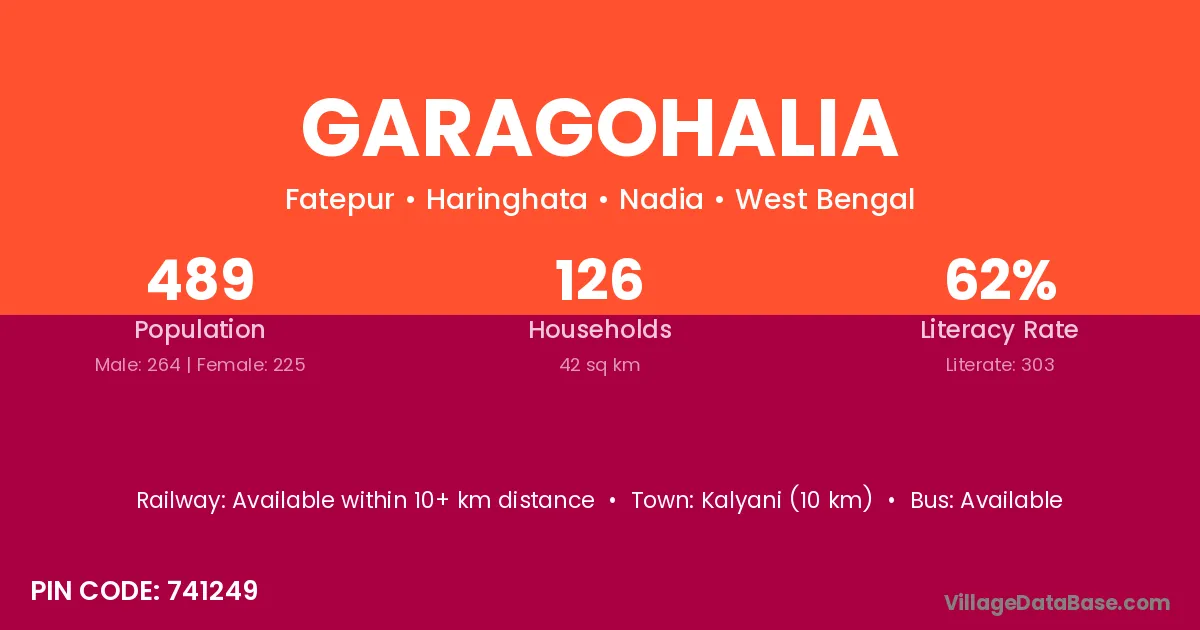 Kalyani (10 km) is the nearest town to Garagohalia village for major economic activities and is located approximately 10 km away.