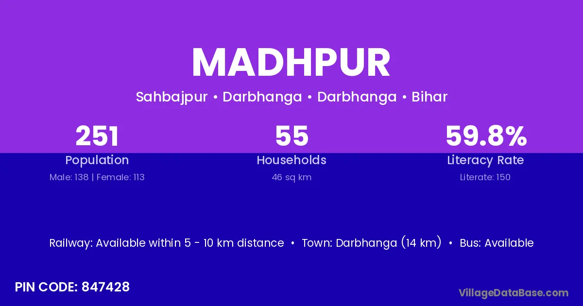 The literacy rate of Madhpur village is 70.74%. Male literacy stands at 77.56% and female literacy at 63.53%.