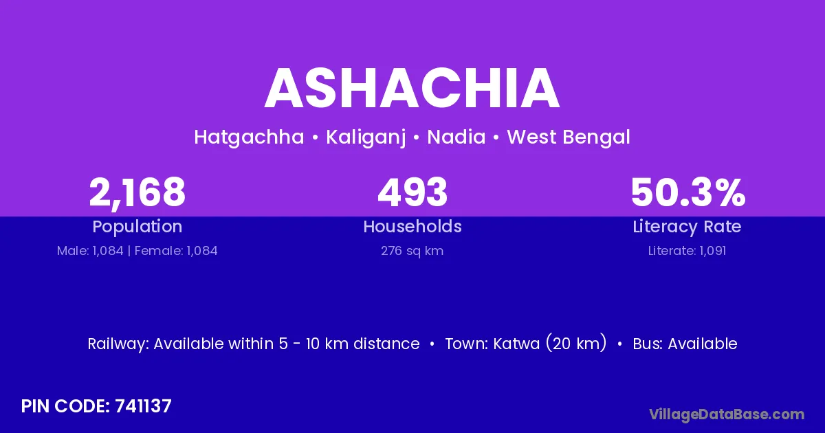 Katwa (20 km) is the nearest town to Ashachia village for major economic activities and is located approximately 20 km away.