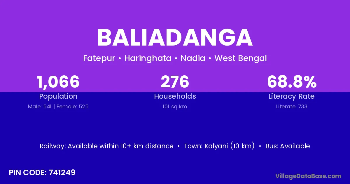 Santipur (7 km) is the nearest town to Baliadanga village for major economic activities and is located approximately 7 km away.