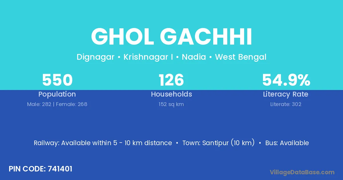 Santipur (10 km) is the nearest town to Ghol Gachhi village for major economic activities and is located approximately 10 km away.