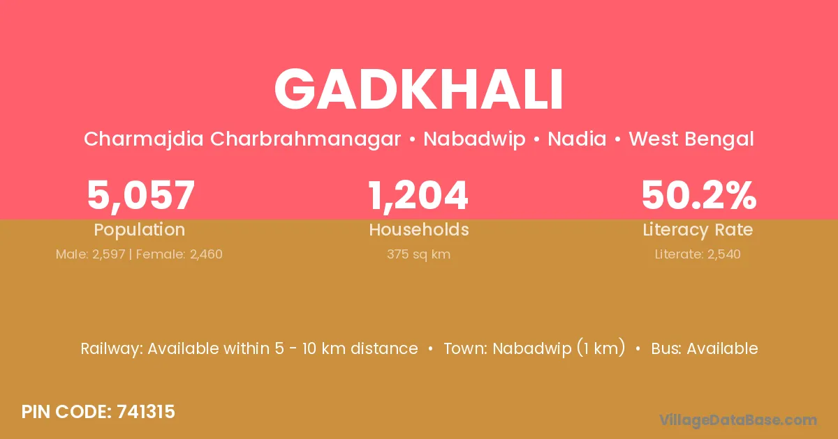 Gadkhali village is located in the Nabadwip Subdivision of the Nadia district in West Bengal.