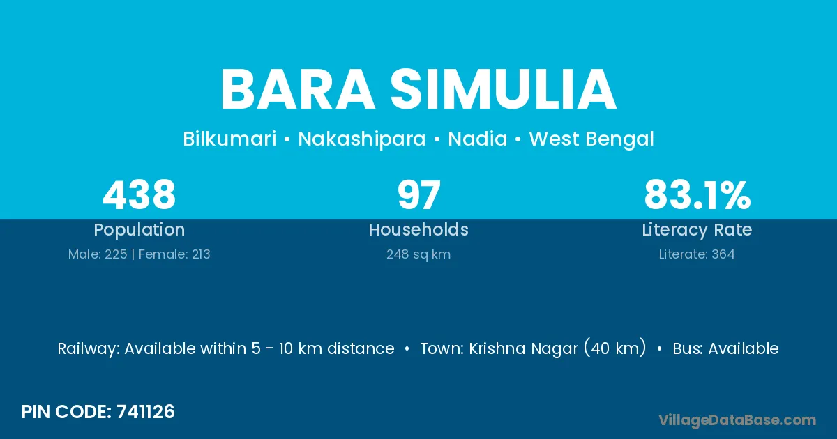 Krishna Nagar (40 km) is the nearest town to Bara Simulia village for major economic activities and is located approximately 40 km away.