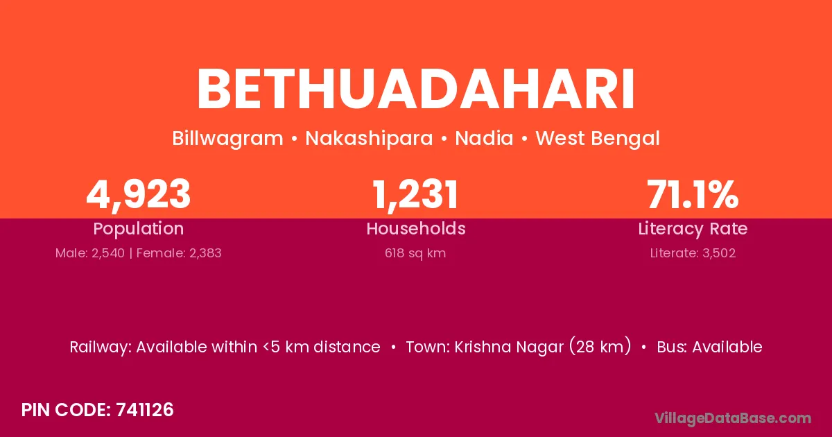 According to Census 2011 information, the village code of Bethuadahari village is 741126.