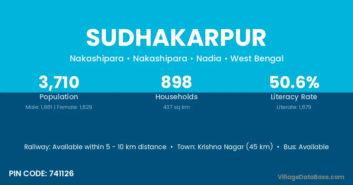 Krishna Nagar (45 km) is the nearest town to Sudhakarpur village for major economic activities and is located approximately 45 km away.
