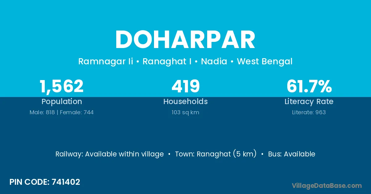 Ranaghat (5 km) is the nearest town to Doharpar village for major economic activities and is located approximately 5 km away.