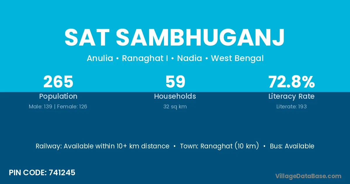 Ranaghat (10 km) is the nearest town to Sat Sambhuganj village for major economic activities and is located approximately 10 km away.